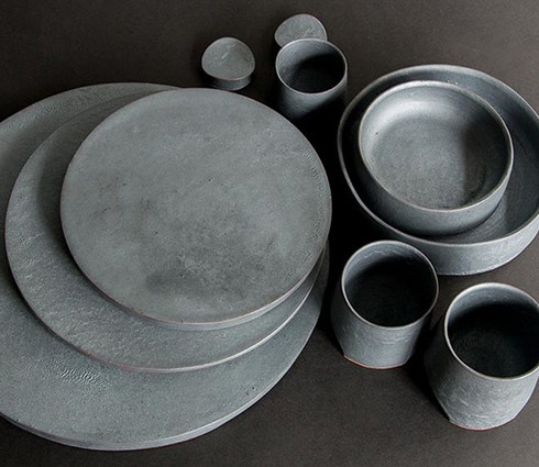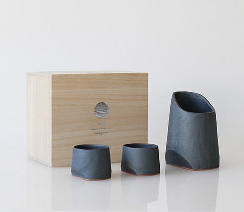 新潟県燕市で制作する金属質な陶磁器。モダンブラックに銀彩が光る『黒釉銀彩』などオリジナル製法で作られた器が並びます。